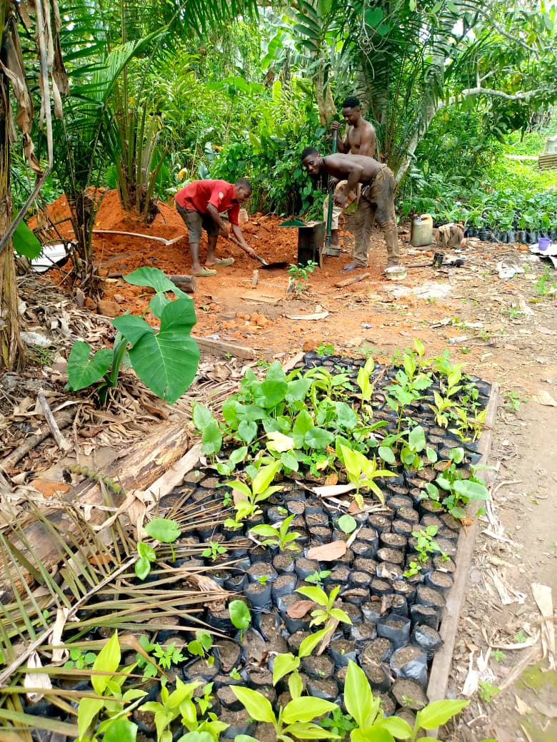 Développé des champs de cacao, manioc, plantain, maïs et légumes pour créer des emplois locaux et renforcer l’autonomie des familles.