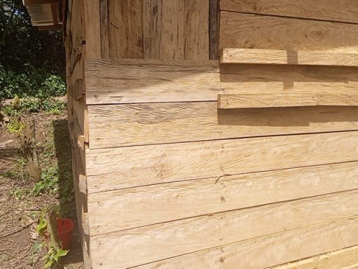 de cabanes en bois directement réalisées avec les arbres des champs, qui offrent un abri aux travailleurs venant de zones rurales très éloignées ;