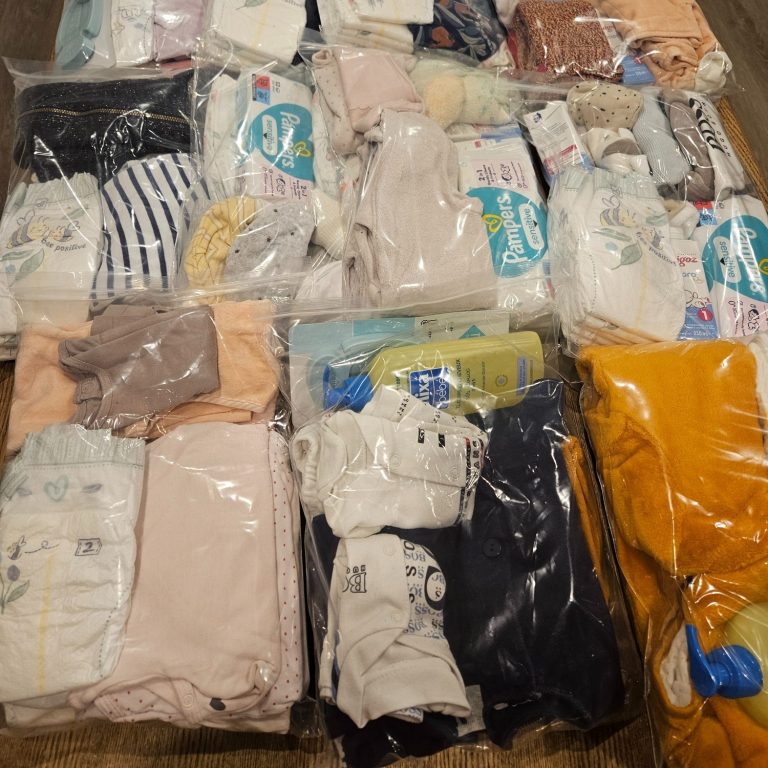 Ces vêtements sont ensuite assemblés dans des kits complets destinés aux mamans en grande précarité, à leur sortie de maternité.